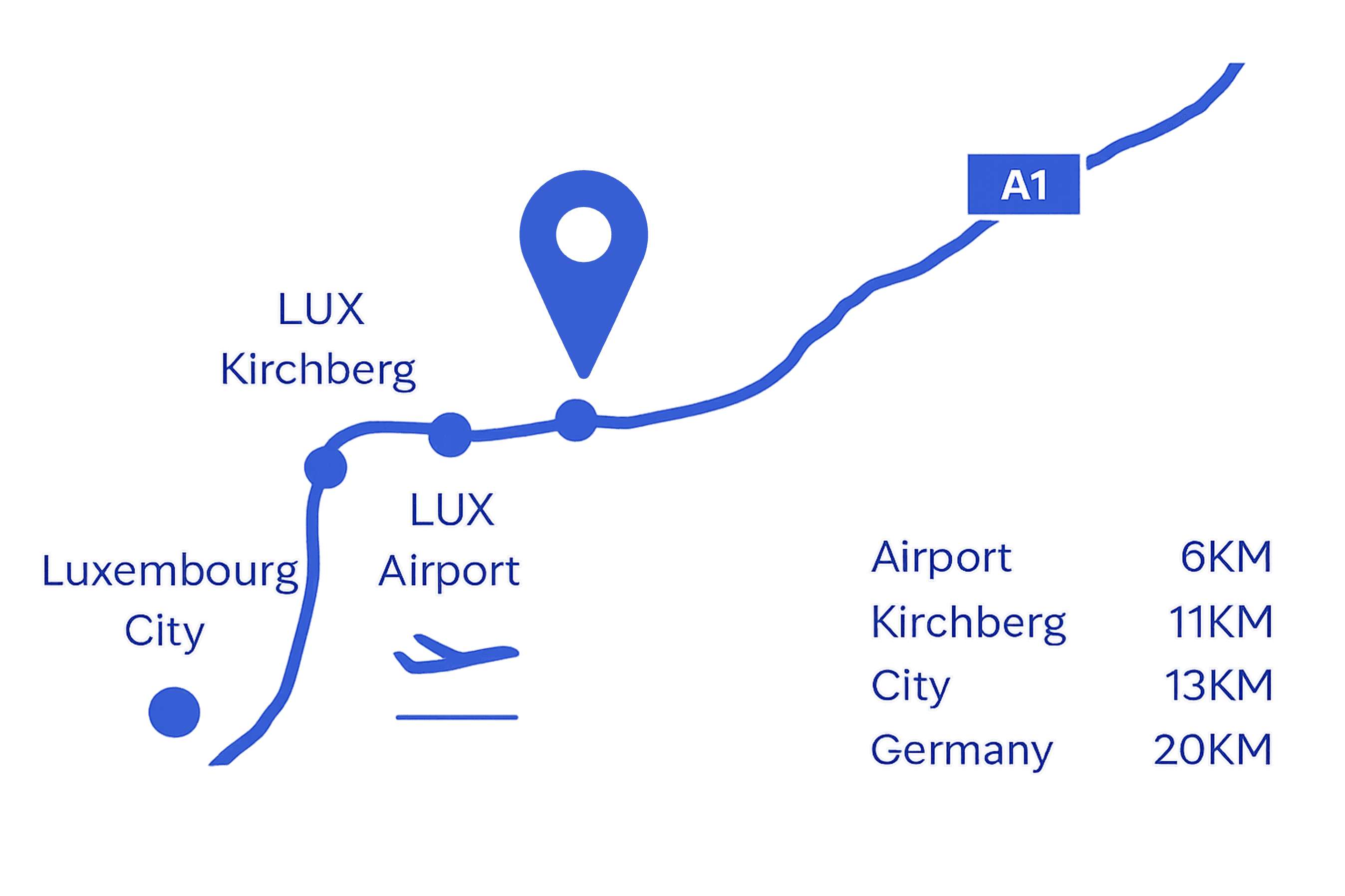 Der Praxisstandort entsteht in Munsbach, direkt an der Autobahnausfahrt der A1 aus Deutschland kommend. Hier passieren täglich die Pendlerströme Richtung Luxemburg Stadt, Kirchberg und die großen Bürostandorte im Osten der Hauptstadt. Nur 20 km von der deutschen Grenze entfernt verbindet der Standort die Lebensrealität der Großregion mit einer optimal erreichbaren medizinischen Infrastruktur.